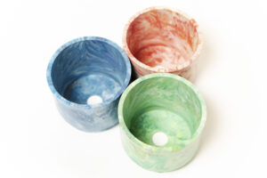 color : red , blue , green ペットボトルキャップなどの廃棄プラスチックだけを原材料とした100%再生プラスチックのフラワーポッドを作成。 ※硬質プラスチックのため、熱した金属などを直に置くと変形する可能性があります。
