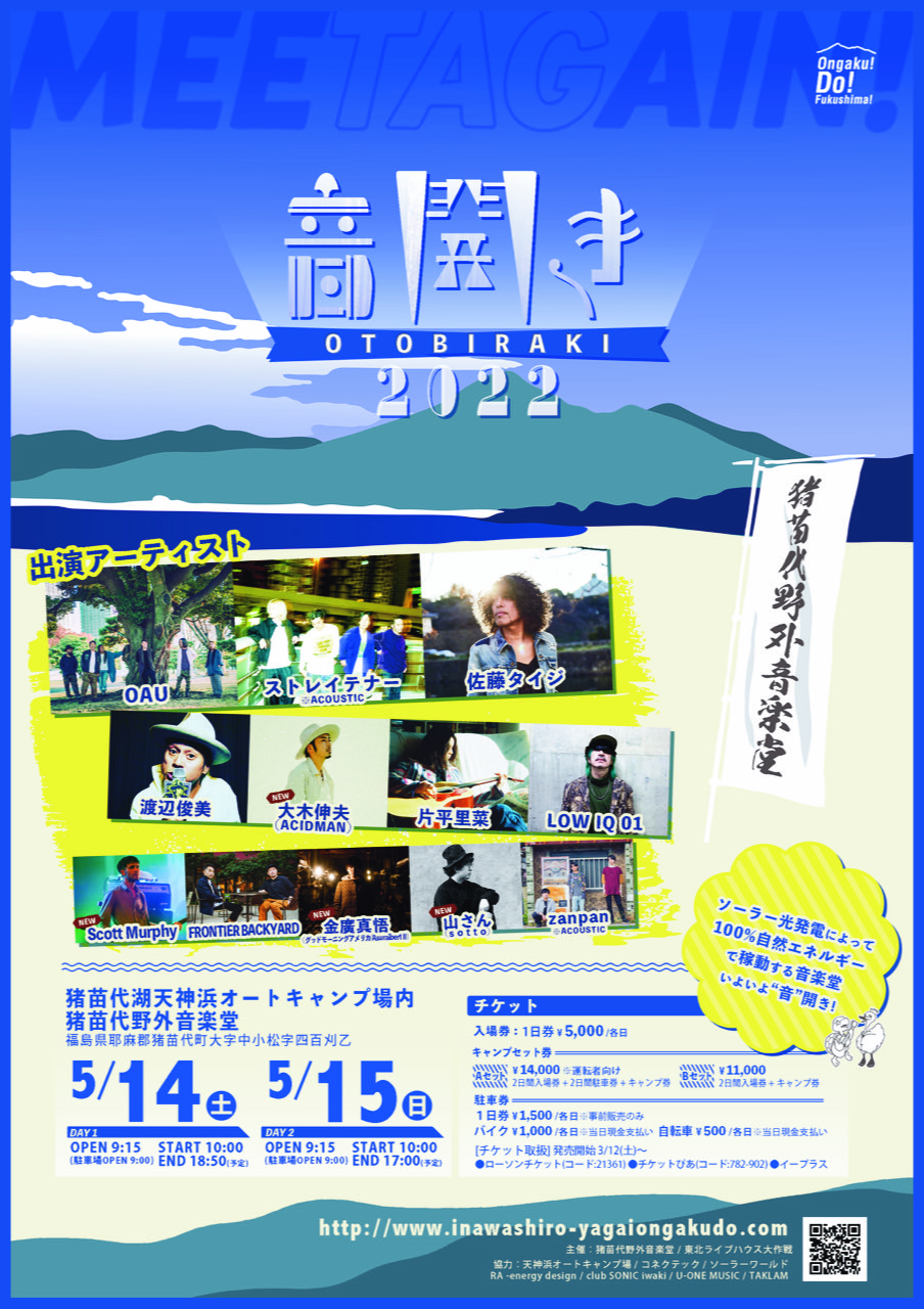 「猪苗代野外⾳楽堂 ⾳開き2022」に、大木の出演が決定!