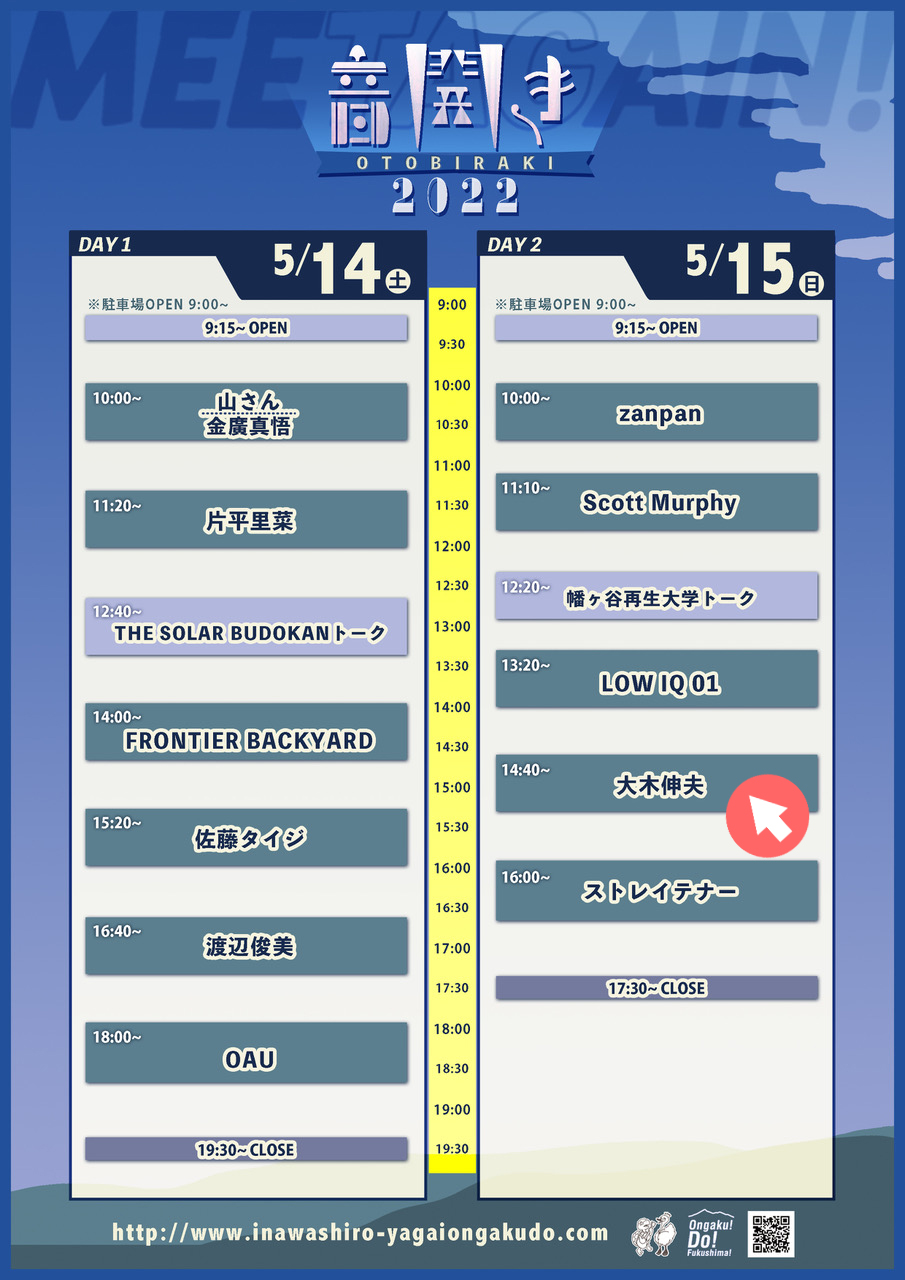 大木出演「猪苗代野外⾳楽堂 ⾳開き2022」 出演日&タイムテーブル発表!