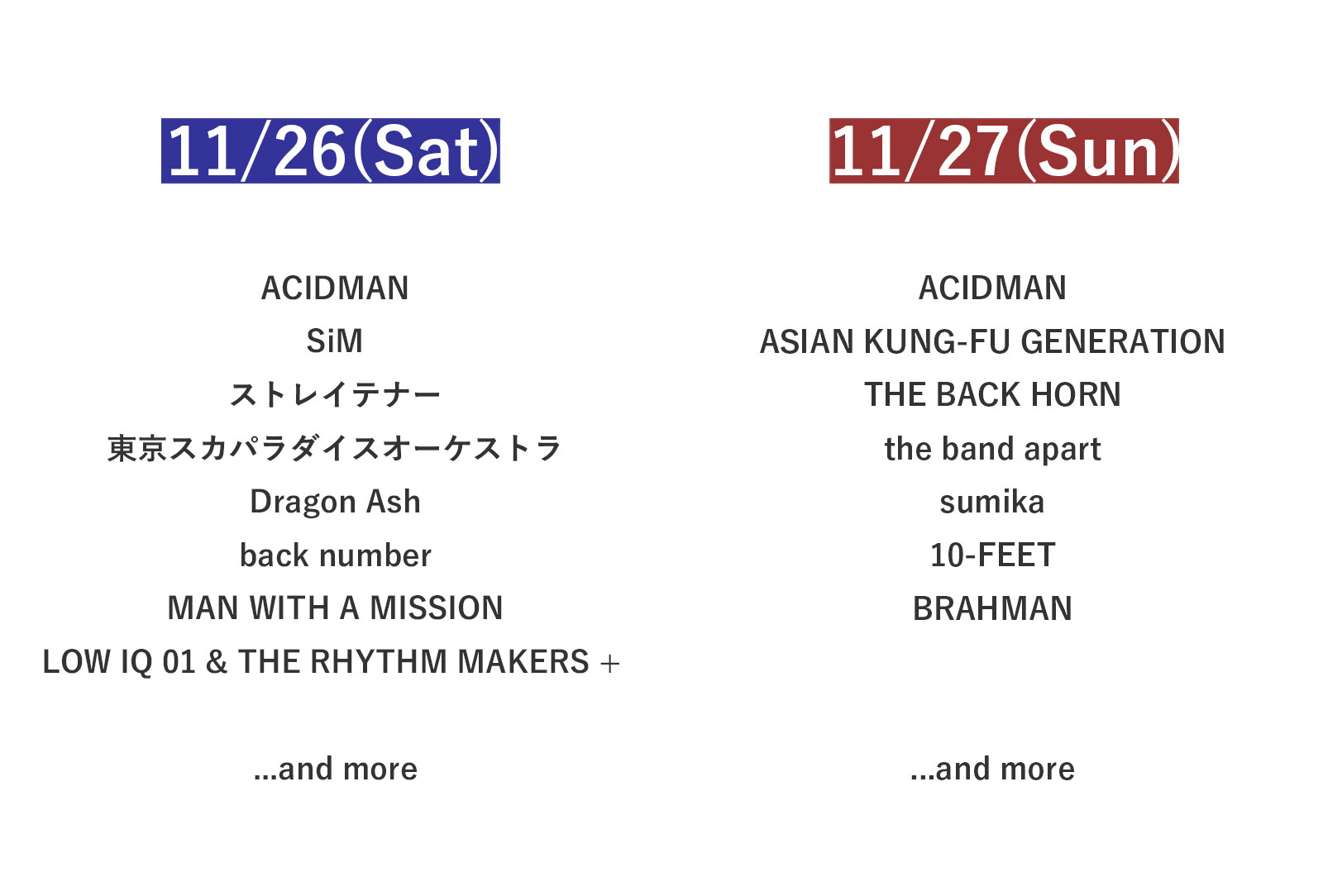 ACIDMAN、SiM、ストレイテナー、東京スカパラダイスオーケストラ、Dragon Ash、back number、MAN WITH A MISSION、LOW IQ 01 & THE RHYTHM MAKERS + …and more