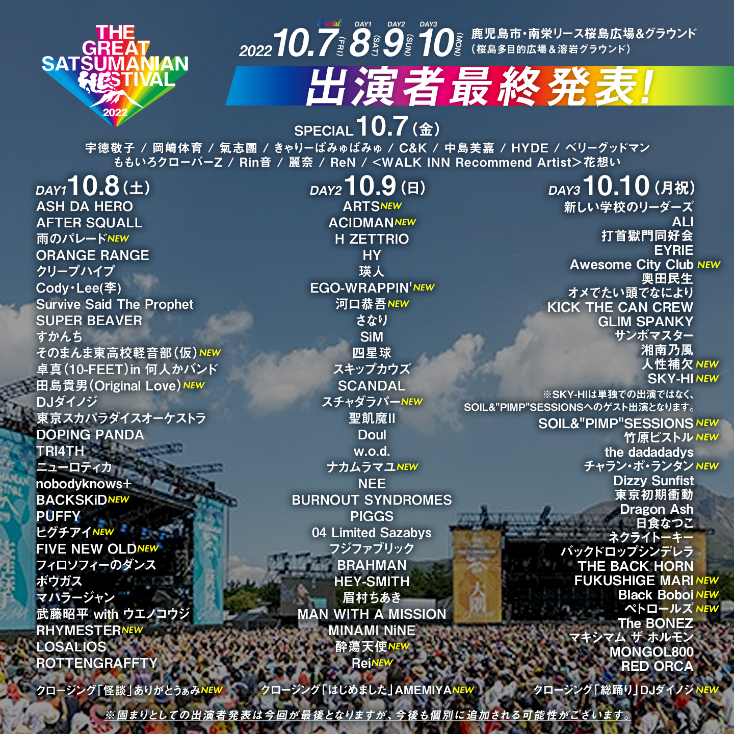 「THE GREAT SATSUMANIAN HESTIVAL 2022」への出演が決定しました!