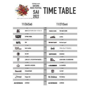 ACIDMAN presents 「SAITAMA ROCK FESTIVAL “SAI” 2022」タイムテーブル発表!