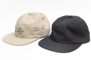 100%コットンで浅めの6パネルフラットバイザーキャップに大木手書きのLoop Kunを刺繍にて配置。
