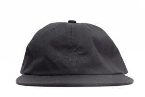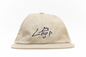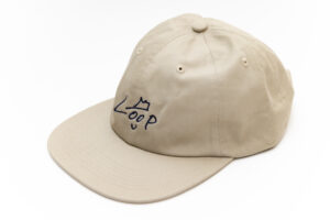 100%コットンで浅めの6パネルフラットバイザーキャップに大木手書きのLoop Kunを刺繍にて配置。