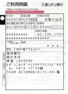 「東日本大震災ふくしまこども寄附金」に振込みいたしました。
