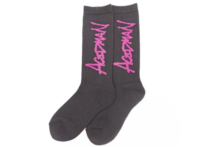 color : sumikuro × pink , beige × blue もはやACIDMANグッズで定番となりつつある、大好評のオリジナルソックスのNewカラーを発売。 大木直筆のロゴを大胆に配置したデザイン。 側面はゴムのない仕様で履き心地を重視。 今回は秋冬をイメージした、sumikuro × pinkとbeige × blue。