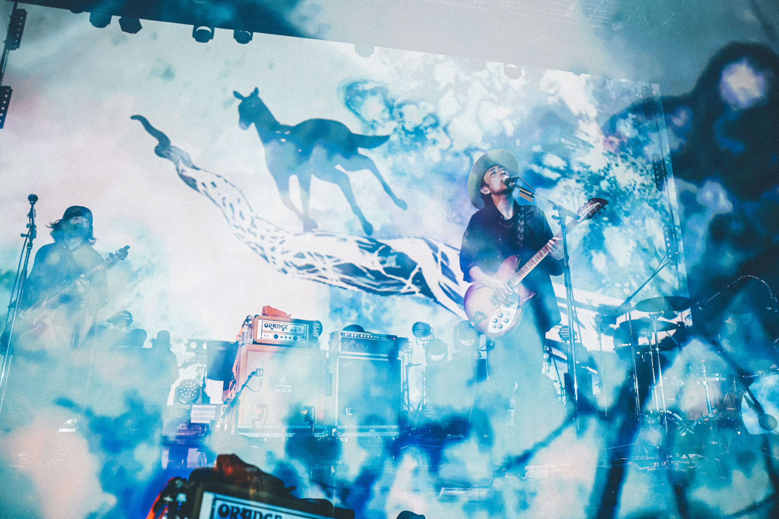 最後のセクションは、完全にスイッチが入った大木を先頭に、「夜のために」「ある証明」「飛光」の爆速ロックチューン3連発で完全燃焼。普通のライブならここでフィナーレだが、まだ重要な曲が残っている。「廻る、巡る、その核へ」だ。それは壮大な命の輪廻の物語を、短編映画に匹敵するハイクオリティのアニメーション映像と音だけで描き切る、約11分の黙示録的大曲。ACIDMANのライブを見たことがない、という人に教えてあげたい。この曲を体験するだけでもACIDMANのライブに来る意味がある。